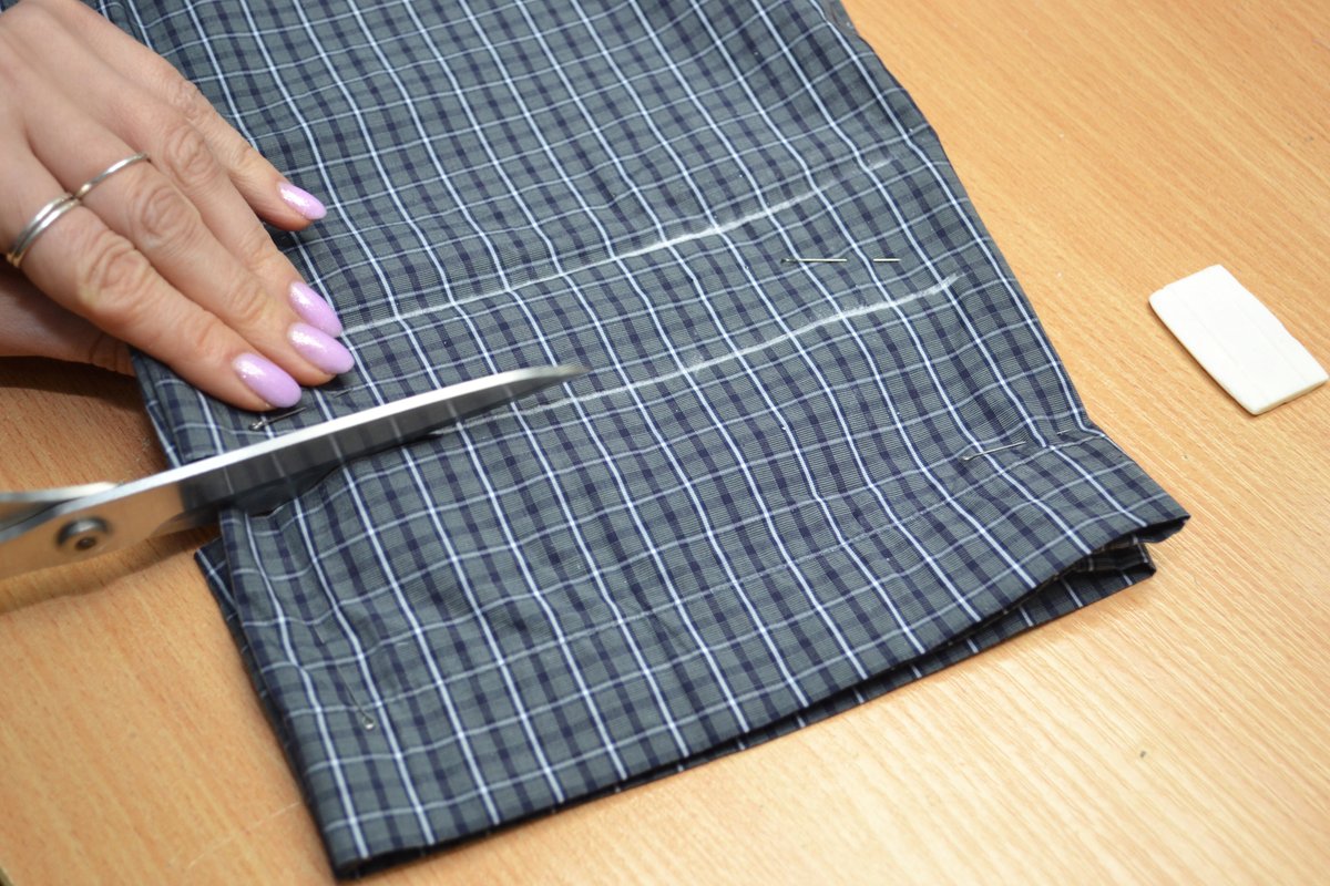 Укоротить низ изделия без повтора фигурной линии (по прямой) / Рубашка, блузка, туника, 1изделие